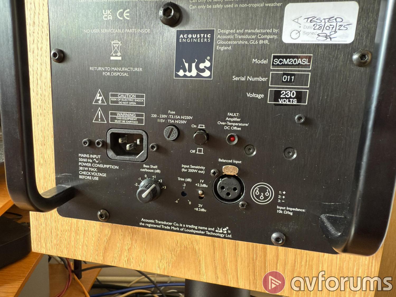 - A lot of the weight comes from the amplification and electronics pack on the back of the SCM20ASL’s cabinet. This comprises two Class AB MOSFET amplifiers, providing 200W for the woofer and 50W for the tweeter. That should be sufficient for most domestic requirements and then some.